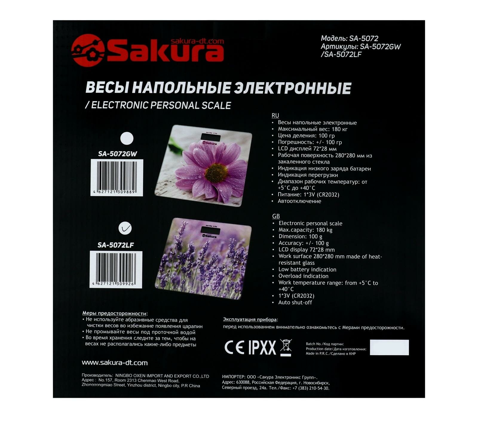 Весы Sakura напольные SA-5072LF до 180кг, электронные "Лаванда"