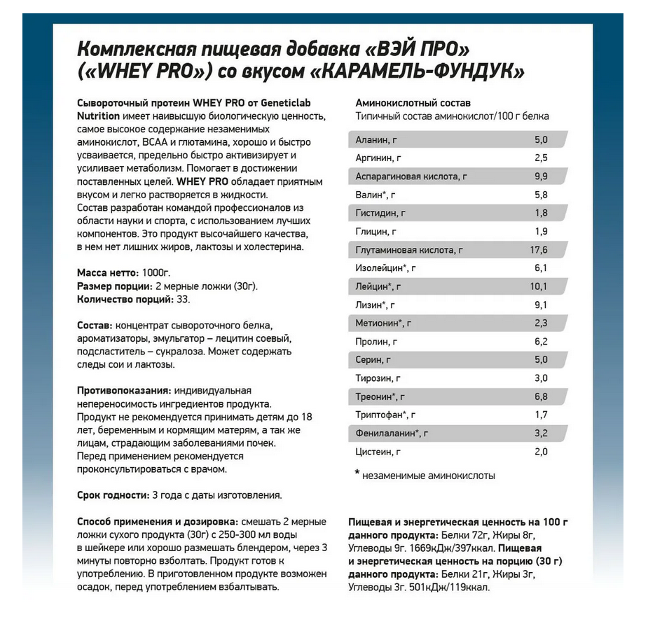 Купить Geneticlab WHEY PRO 1000 г (Карамель-фундук)