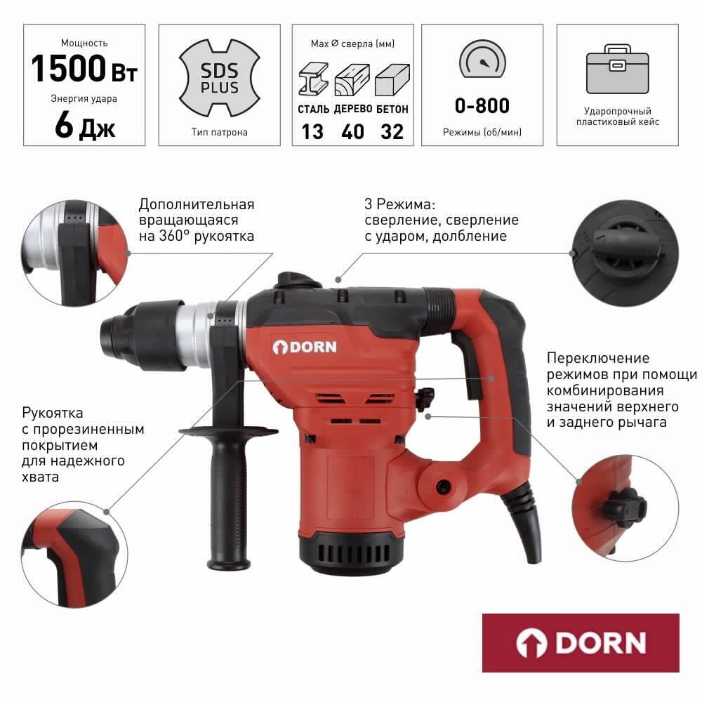 Перфоратор DORN DH-1500, 1500 Вт 6 Дж интересное: