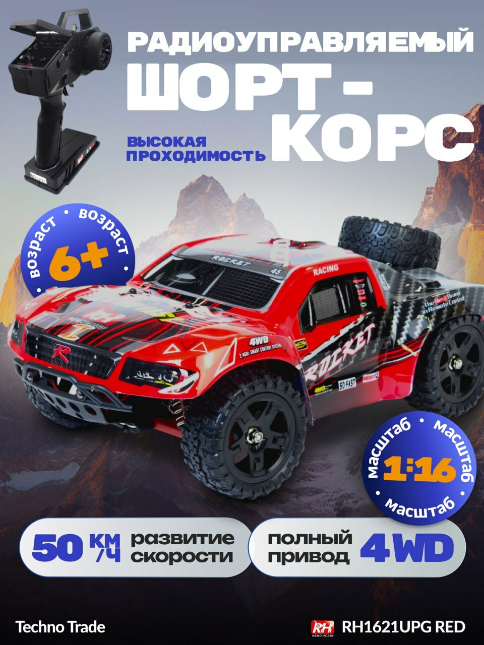 Купить Радиоуправляемый шорт-корс Remo Hobby Rocket UPGRADE 4WD 2.4G 1:16 RTR RH1621UPG-RED