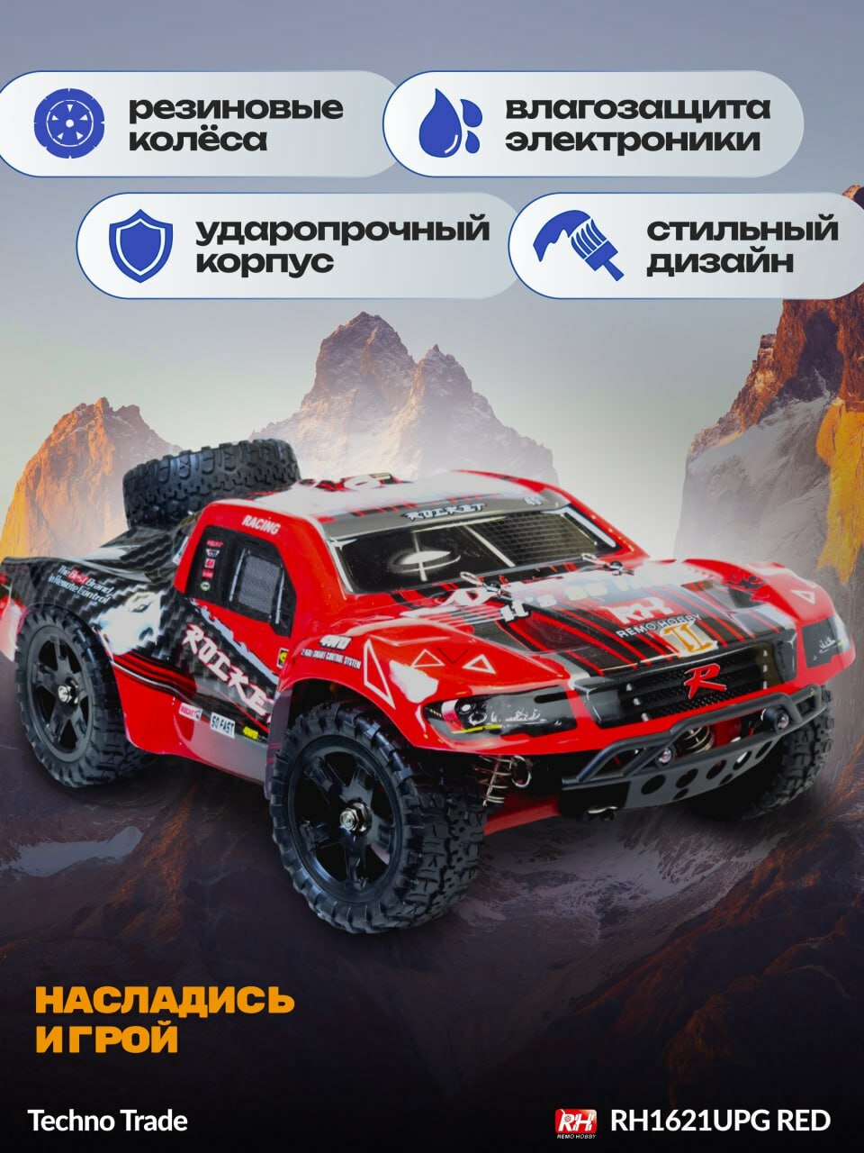 Радиоуправляемый шорт-корс Remo Hobby Rocket UPGRADE 4WD 2.4G 1:16 RTR RH1621UPG-RED / машина джип на пульте управления