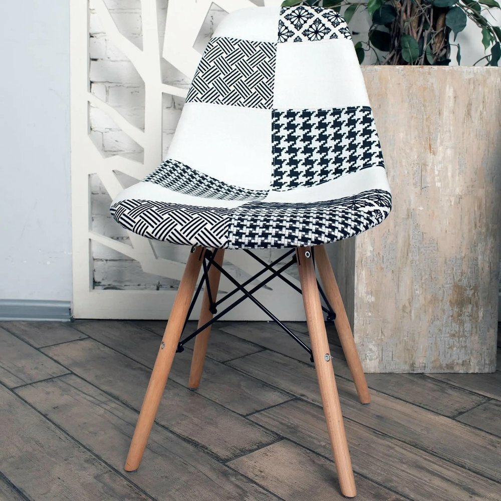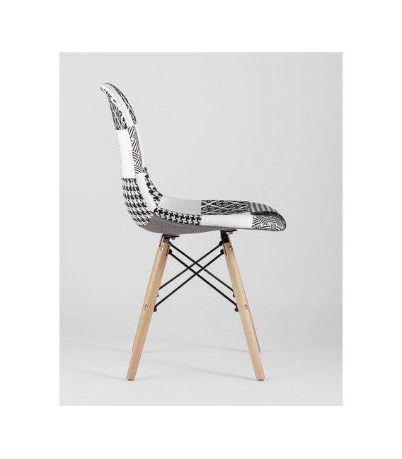 Стул STOOL GROUP Eames обивка в стиле пэчворк черно-белый, ножки массив бука