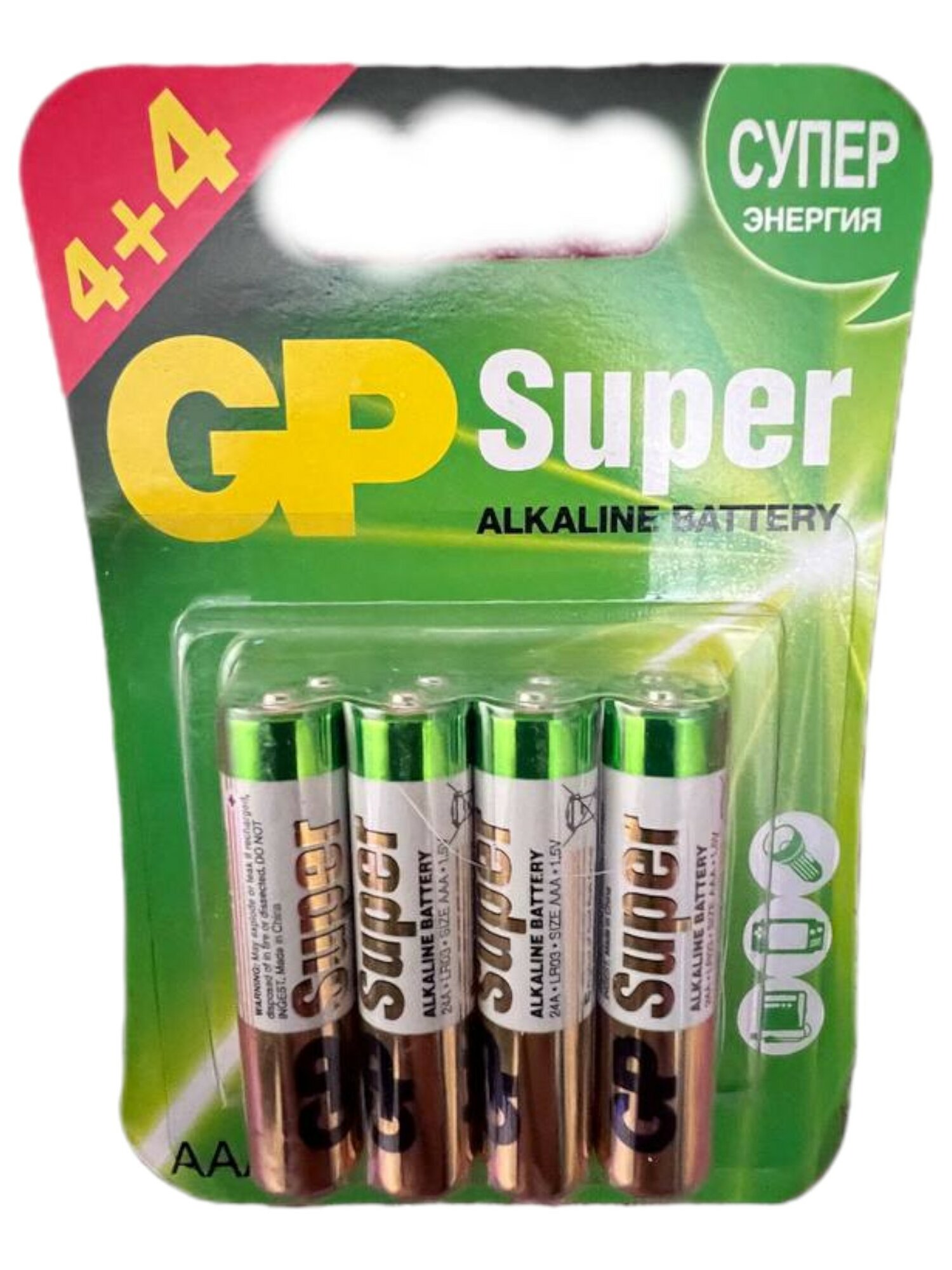 Батарейки GP Super щелочные (алкалиновые), тип AAA, 1.5V, 4шт. (Мизинчиковые)