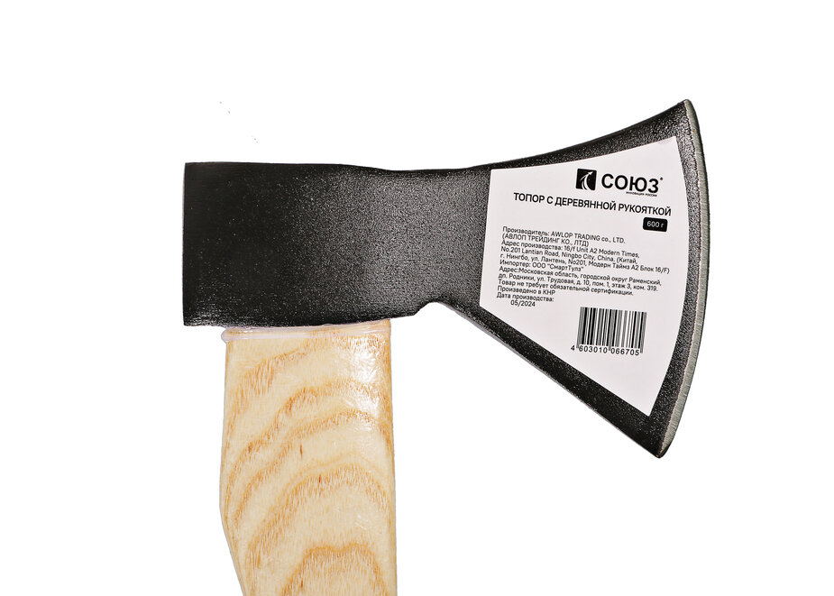 Топор, 600г, деревянная рукоятка, СОЮЗ