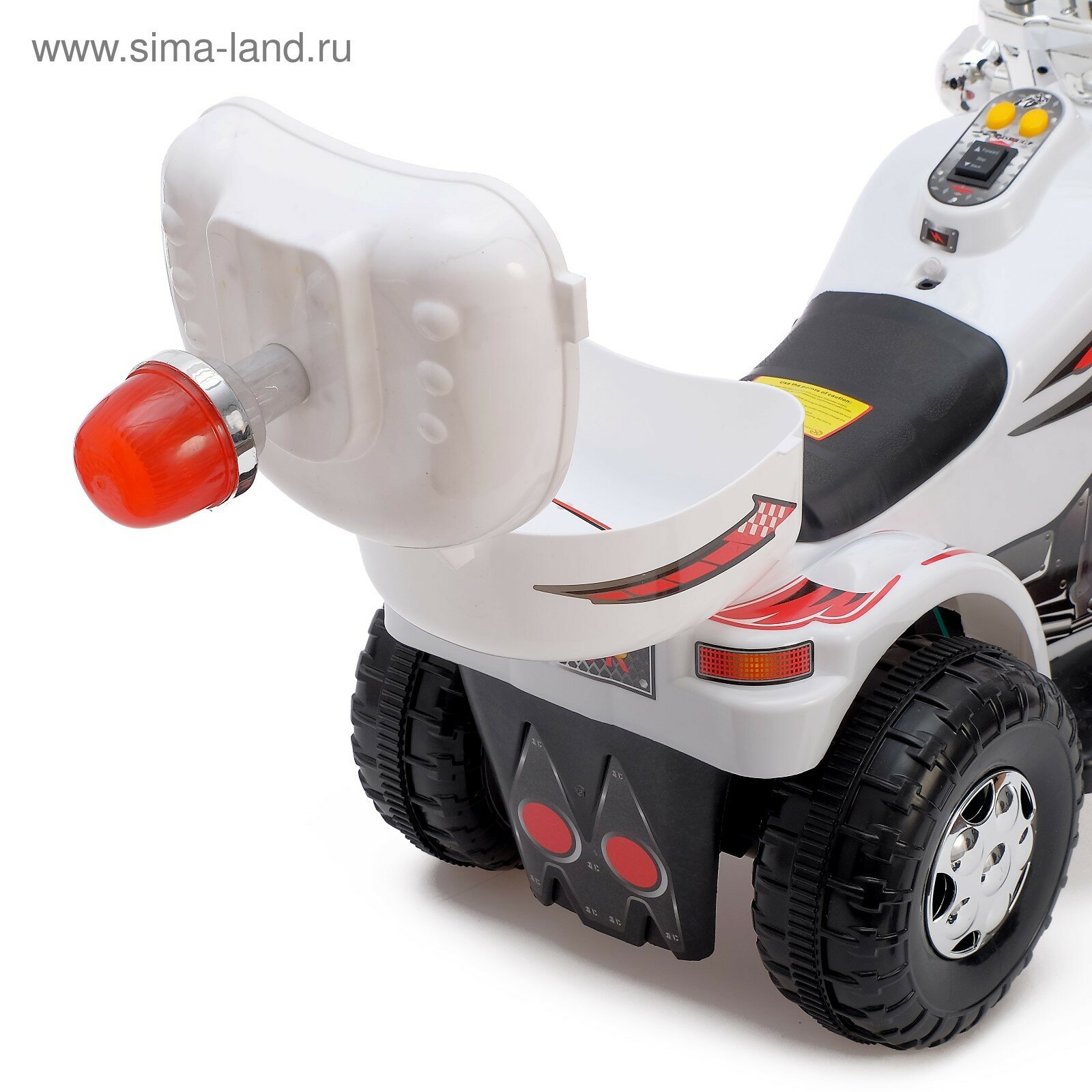 | Дополнительная информация | Высота от пола до сиденья — 28 см. Максимальная нагрузка до 25 кг. Максимальная скорость — 3 км/ч. Аккумулятор — 6V4,5AH. Заводится с кнопки. |