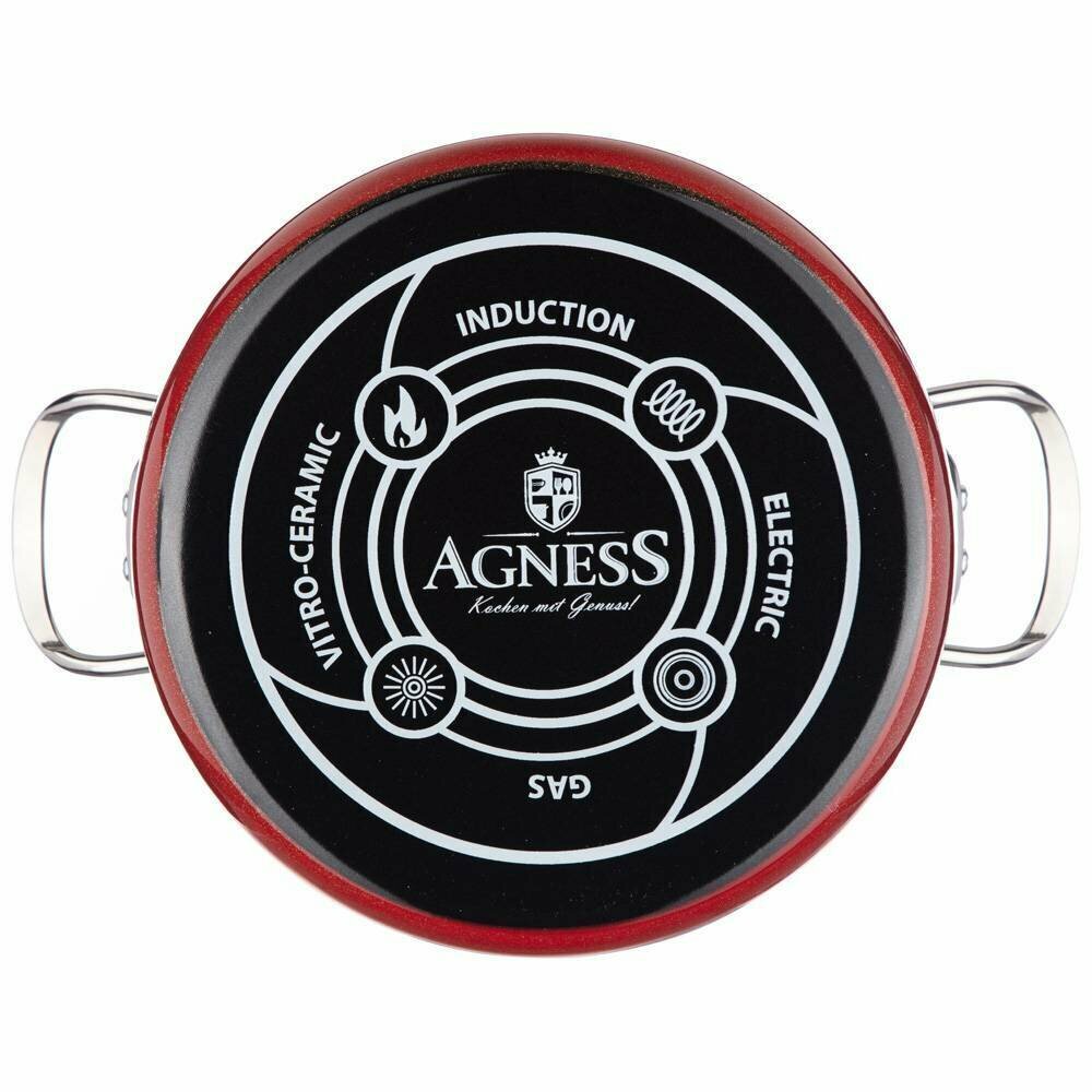 Кастрюля Agness Серия Deluxe эмалированная с крышкой, 18*12,5 см, 3,1 л, красный (901-051) интересное: