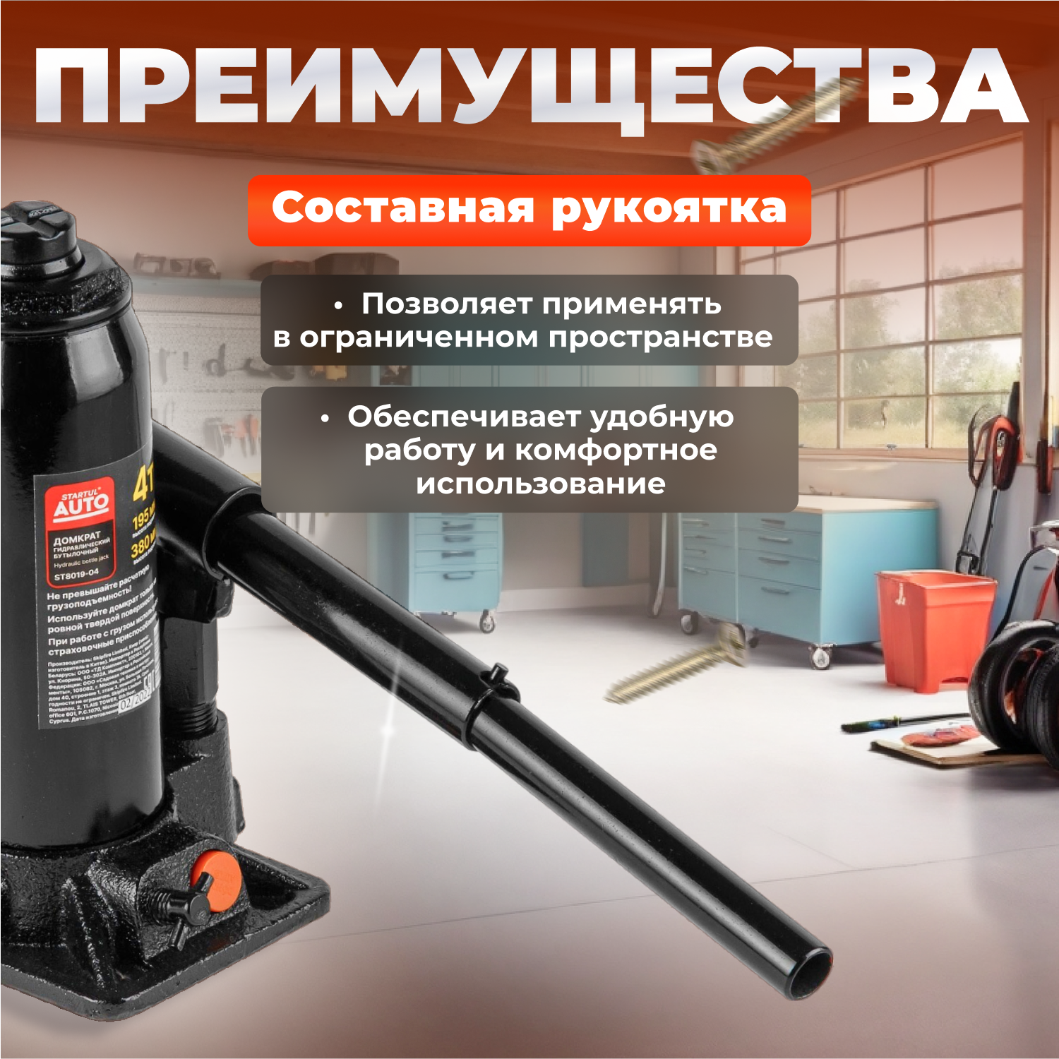 СохранитьДомкрат гидравлический бутылочный 4 т STARTUL Auto (ST8019-04) интересное: