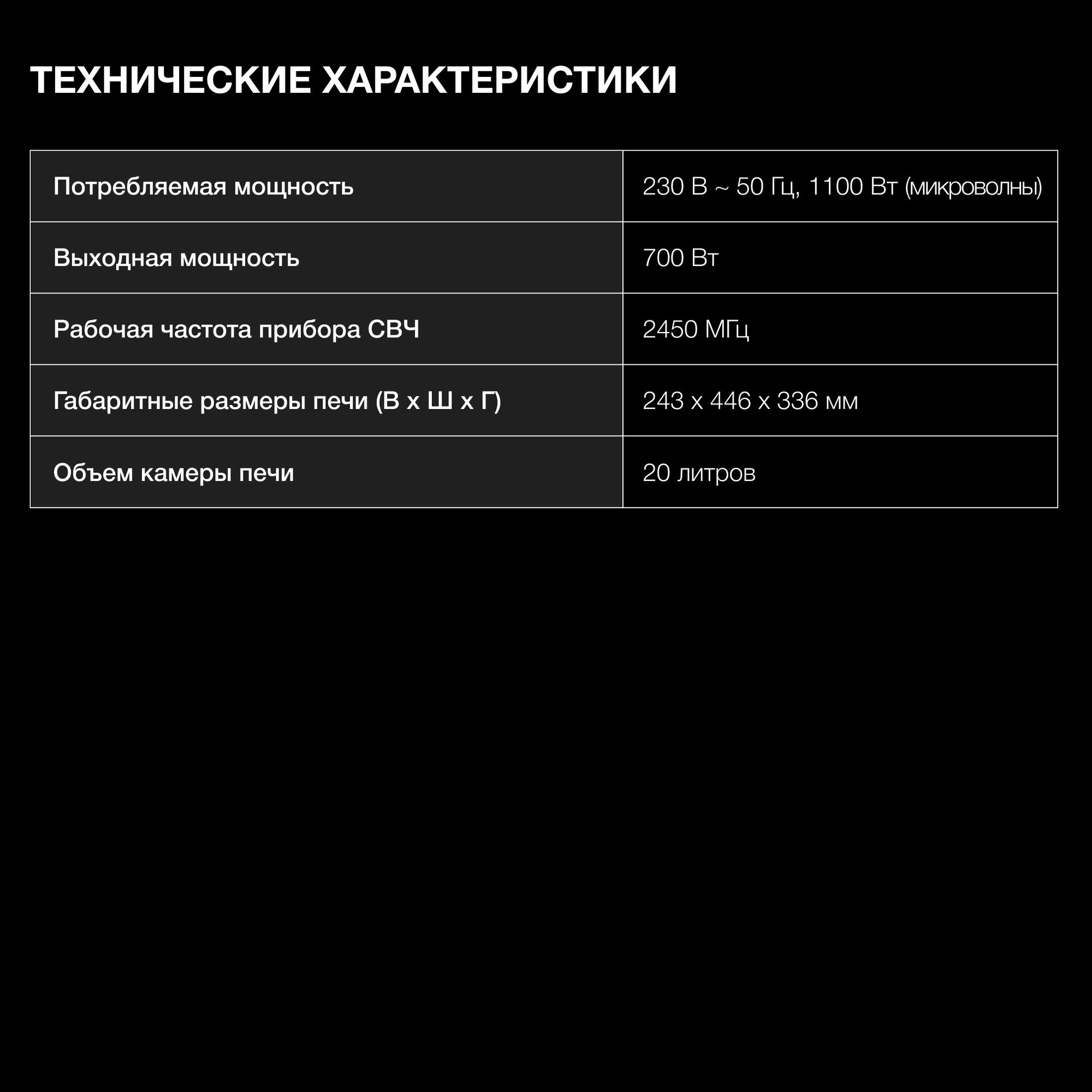 | Плюсы: | Компактная; дверьца открывается на клавишу; регулируемые режимы мощности; 20 литров. |