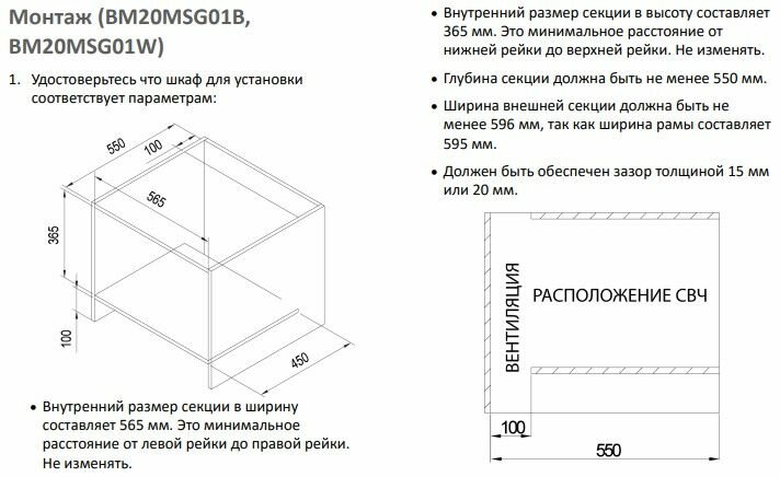 Микроволновая печь встраиваемая MANYA BM20MSG01W белый 20 л 700 Вт гриль 800 Вт