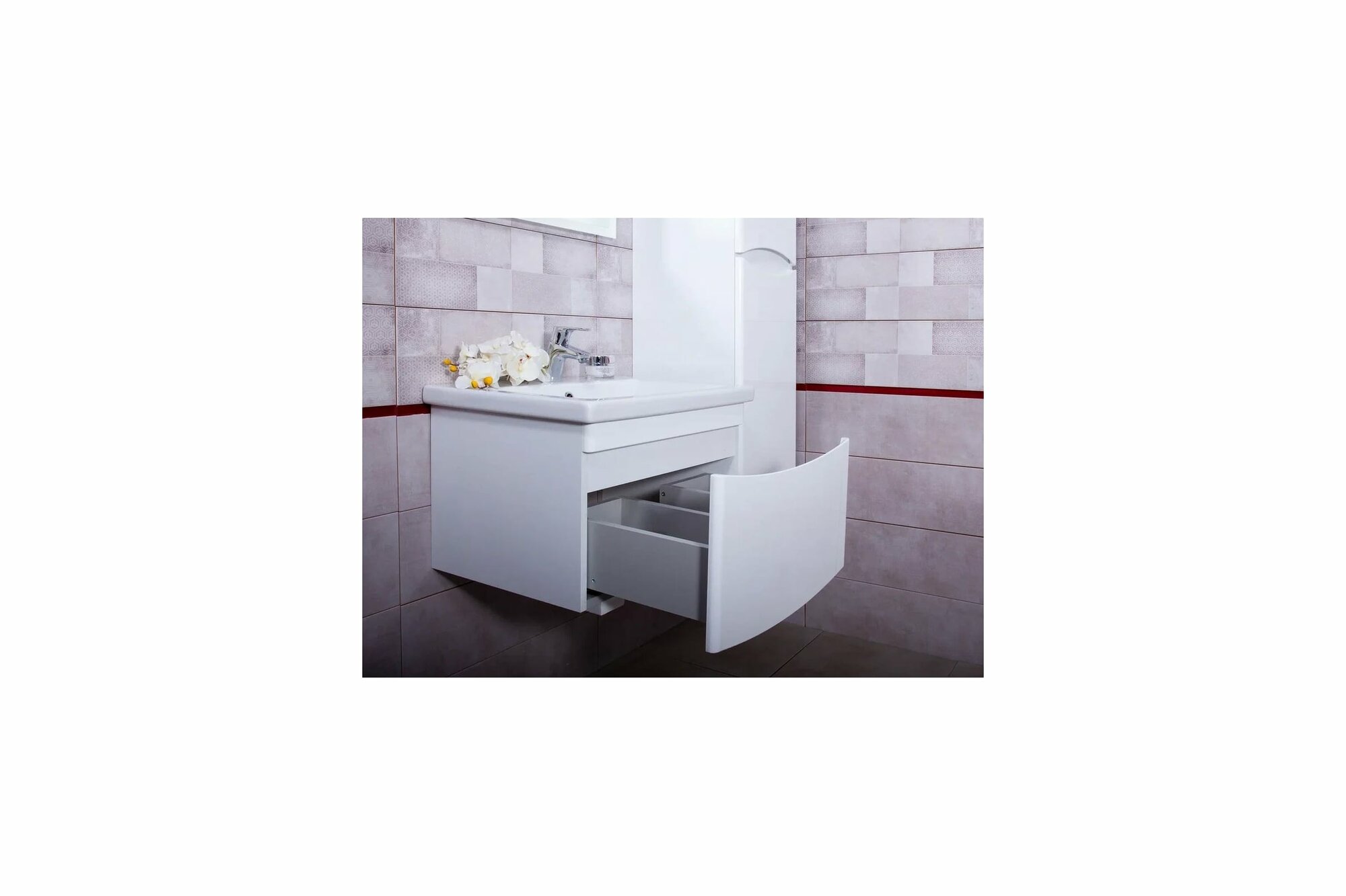 Тумба с раковиной для ванной Кристалл 50 белая.
