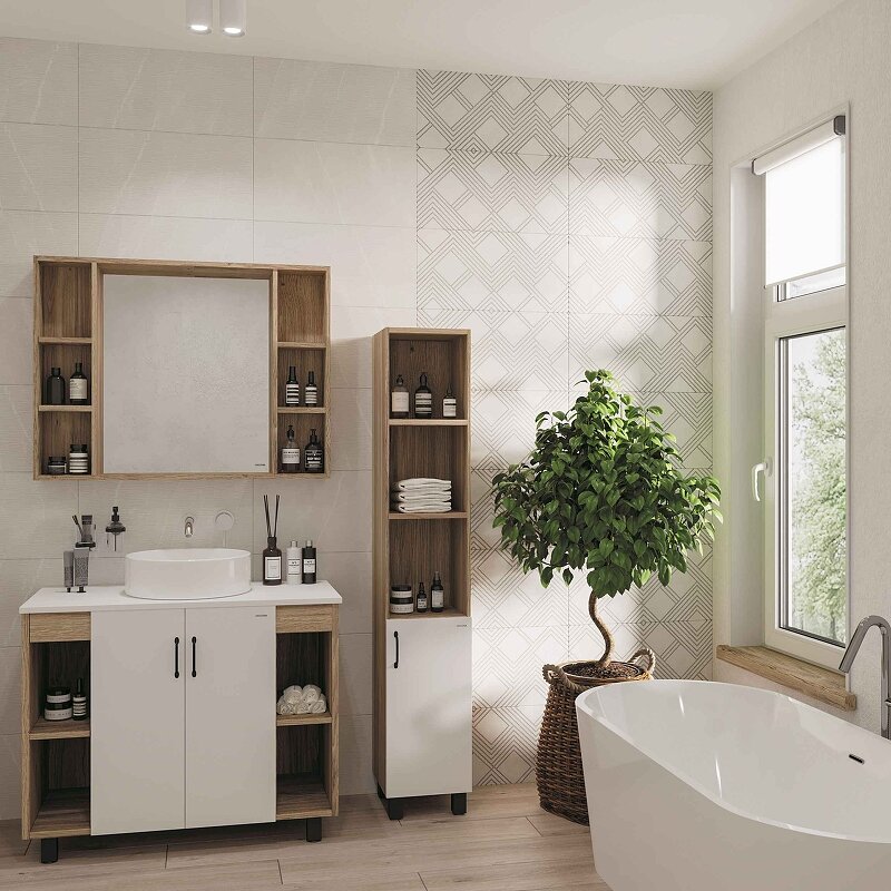 Тумба под раковину Grossman Флай 100 напольная, дуб сонома/белая (101001) интересное: