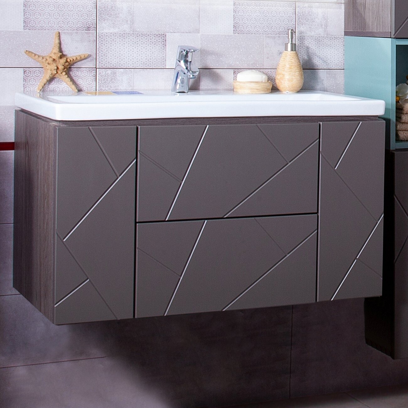 Тумба с раковиной Бриклаер Кристалл 90 софт графит интересное:
