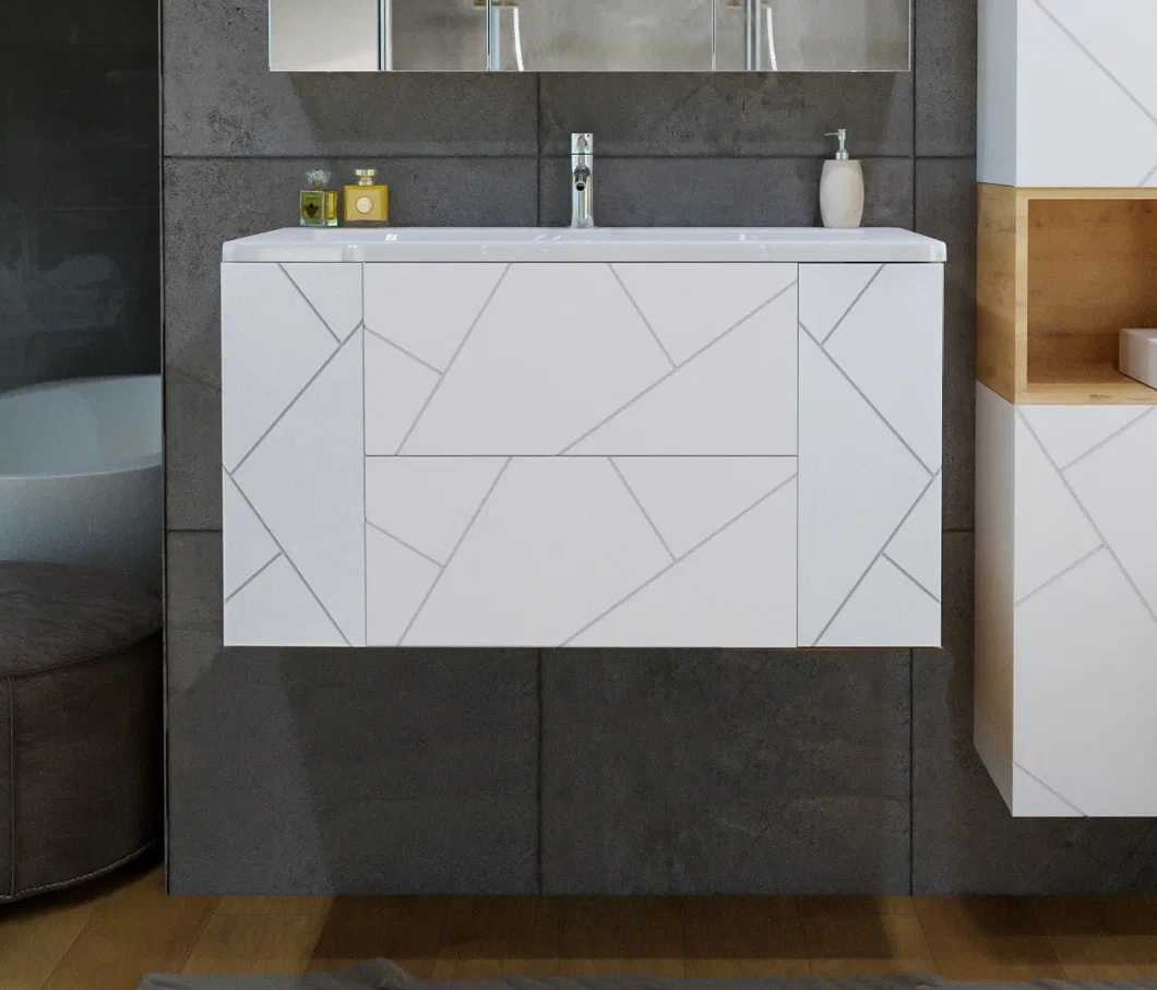 Тумба с раковиной для ванной Кристалл 100 без ниши,Белая. интересное:
