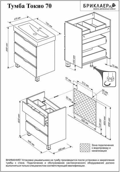 Тумба с раковиной Бриклаер Токио 70 светлая лиственница/белый интересное:
