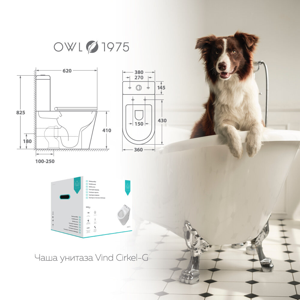 Чаша унитаза-компакта напольного безободкового OWL 1975 Vind Cirkel-G с сиденьем DP микролифт интересное: