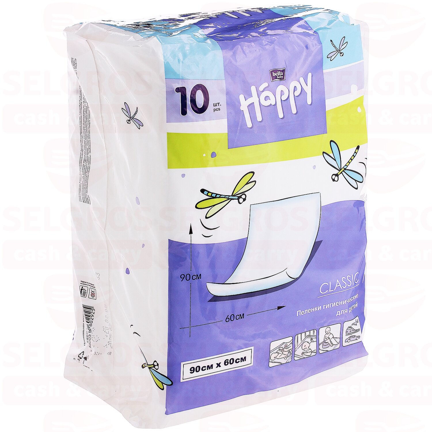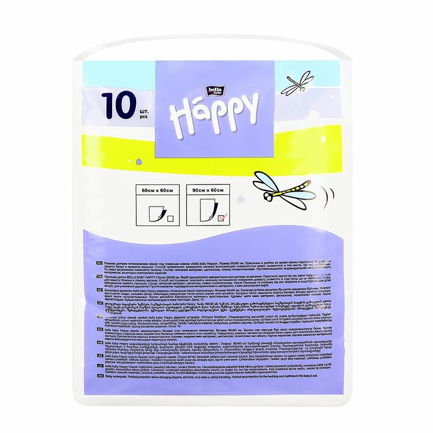 Пеленки детские гигиенические Bella baby Happy 90х60 по 10 шт.