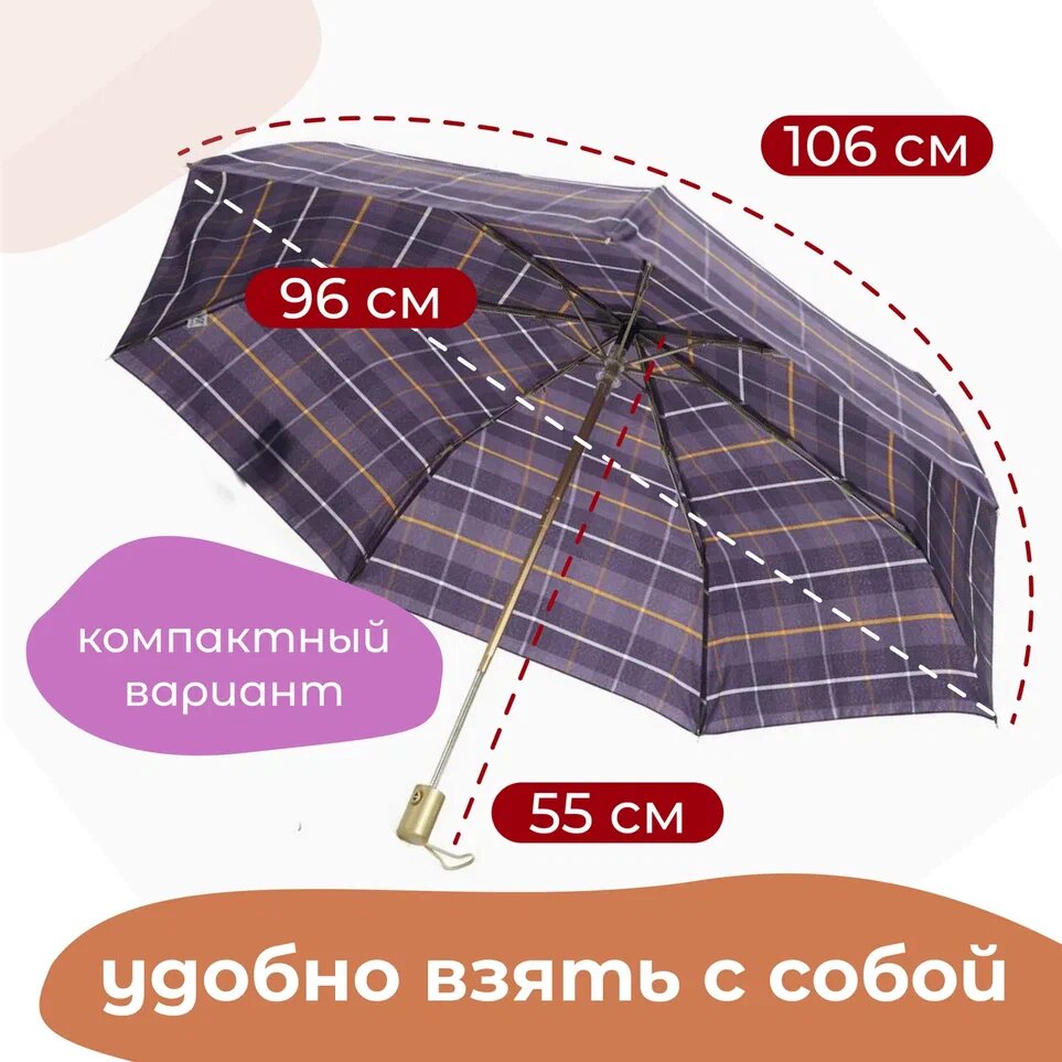 Мужской зонт складной 3 сложения, полуавтомат