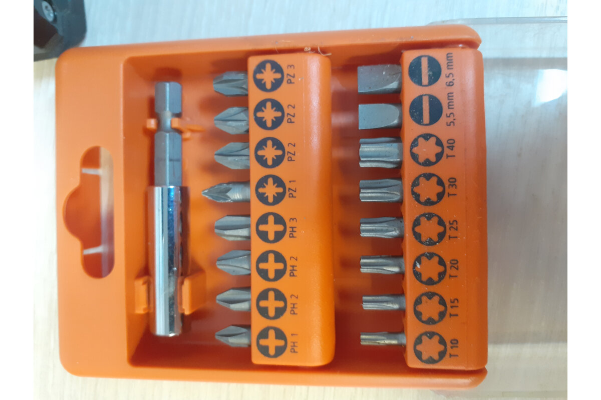 | Биты подробно | SL 0.8 x 5.5, SL 1.2 x 6.5, PH 1, 2 x PH 2, PH 3, 2 x PZ 2, PZ 3, TX 10, TX 15, TX 20, TX 25, TX 30, TX 40 |