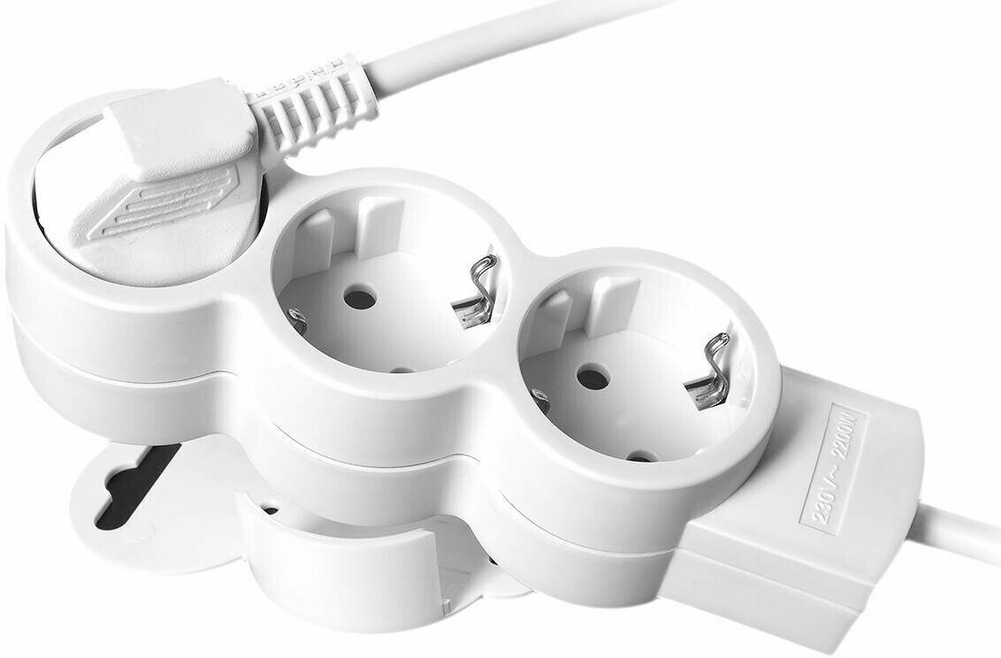 duwi Удлинитель Duwi, 3 розетки, 1.5 м, 10 А, 2200 Вт, ПВС 3х0.75 мм2, с з/к, белый