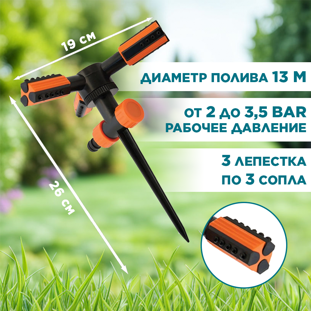 Ороситель Трио AQUAPULSE, 3-х рожковый вращающийся на пластиковой ножке АР3008 интересное: