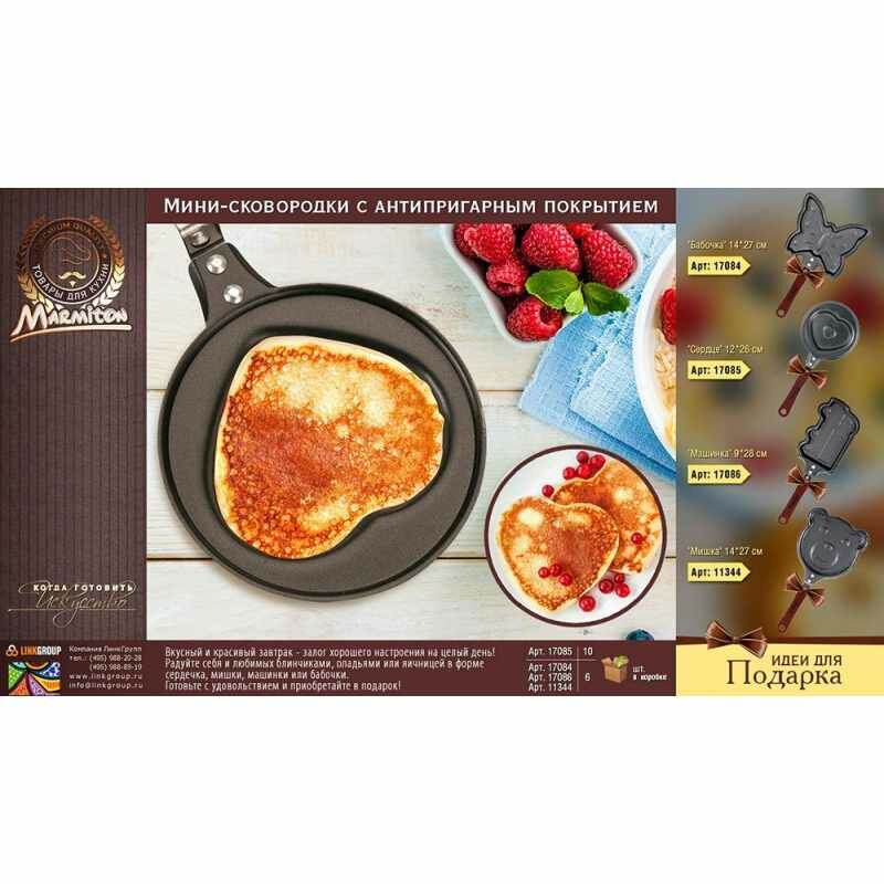 Мини-сковорода "Сердце" /сковородка с антипригарным покрытием для яишницы/оладьев/блинов/кухни, подарочная, 12*26 см MARMITON