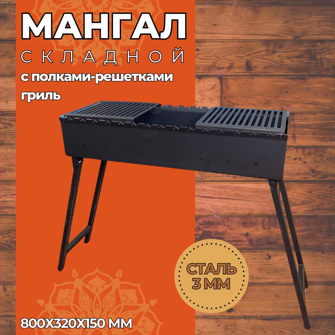 Мангал складной 800 мм. с полками-решётками гриль, сталь 3 мм. интересное: