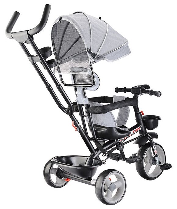 Велосипед детский трёхколесный, с родительской ручкой и козырьком ROCKET 0999-3 3-х колесный, серый интересное: