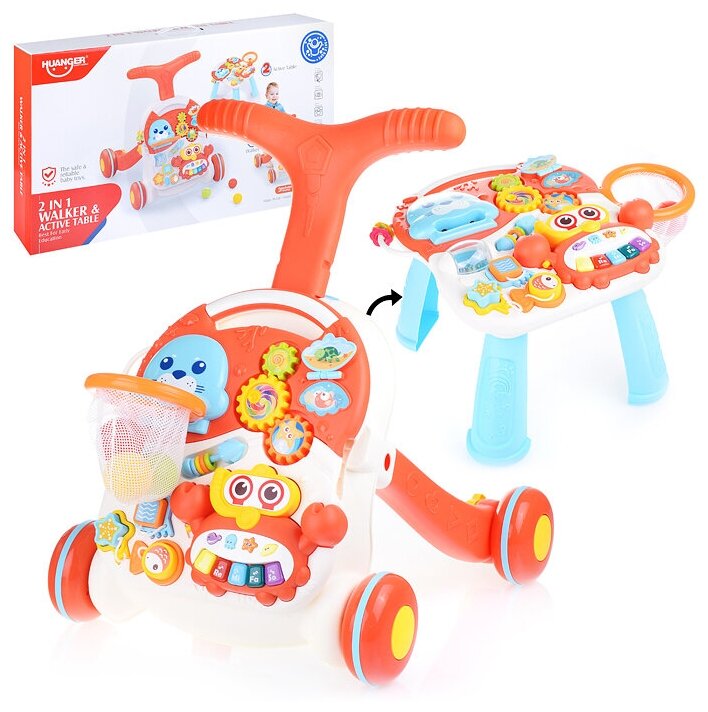 Развивающий центр Haunger Ходунки-каталка-столик Морские обитатели красный
