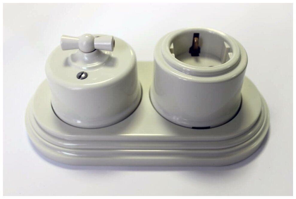 Розетка электрическая с заземляющим контактом в ретро стиле BIRONI, пластик, цвет Белый