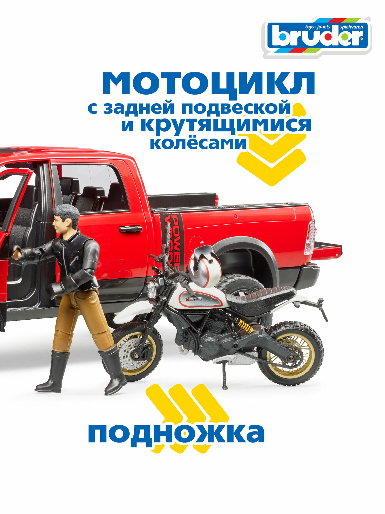 Масштабная модель Bruder 02-502 Внедорожник Ram с мотоциклом Ducati .