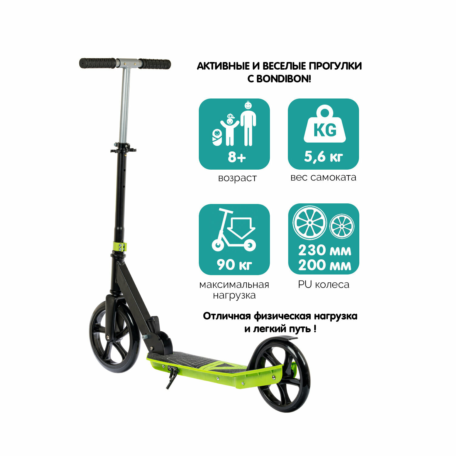 Городской самокат BONDIBON Delta 230/200, зеленый