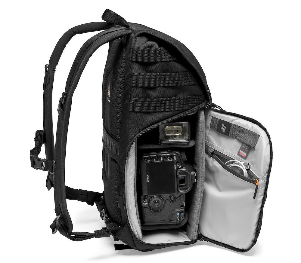 | Плюсы: | Самый легкий из из серии Protactic. При этом конструкция достаточно жесткая, так что не возникает опасения за технику внутри. Объем 20 литров оптимален для города и недалеких поездок. Влезает полнокадровая зеркалка с массивным объективом и либо пара объективов поменьше, либо еще один крупный. Плюс остается примерно половина объема для других вещей с доступом сверху. Удобный доступ к фото-отсеку с обоих сторон сбоку. Настраиваемая конструкция разделителей. "Этажерка" для фототехники полностью извлекаемая, так что рюкзак превращается в однообъемник, если нужен просто удобный рюкзак. Большой внутренний карман для планшета/ноутбука, который расположен около спины (важно для правильной развесовки). Снаружи много петелек, ремешков "молле", так что при желании можно обвесить подсумками и добавить объема для мелочей. К качеству материалов и швов претензий нет. |