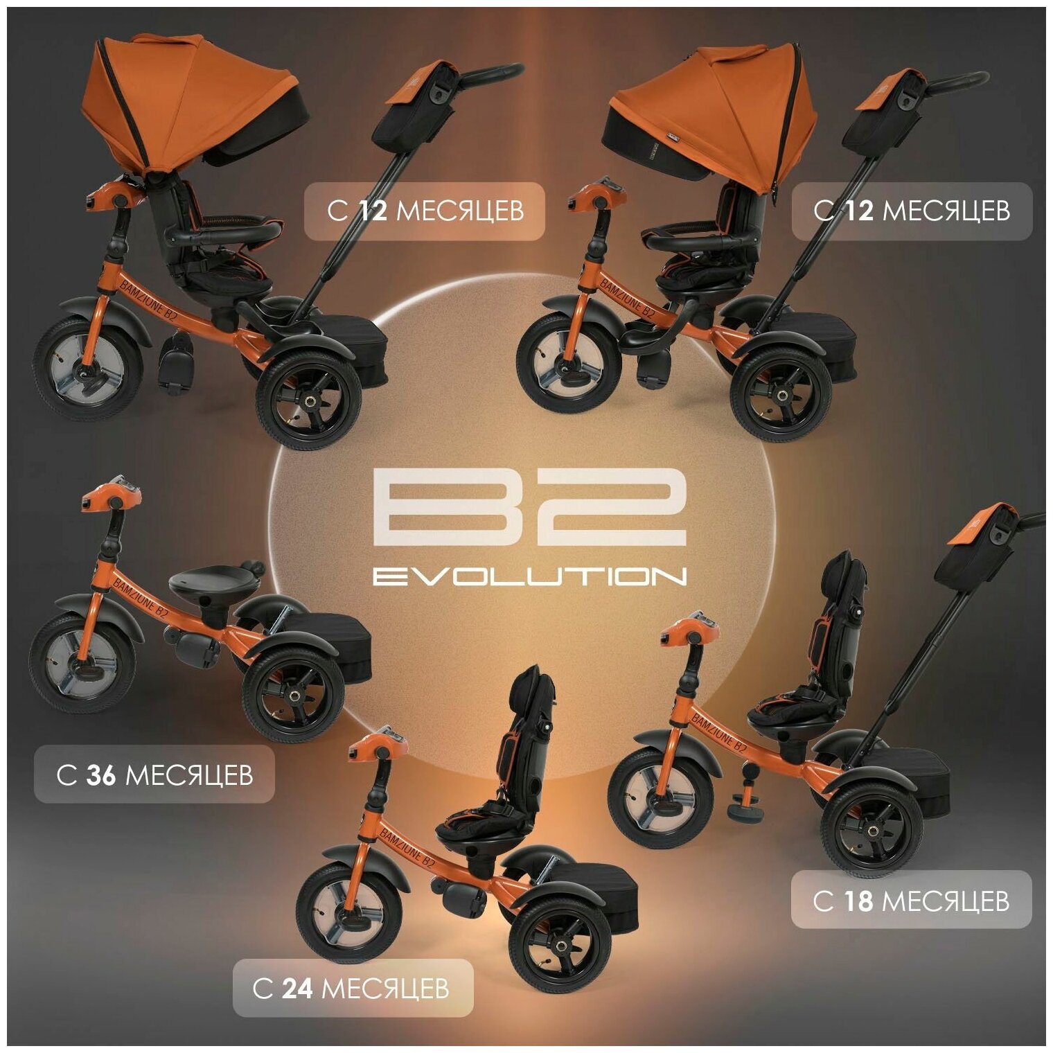 Велосипед трехколесный Nuovita Bamzione B2 Premio (Terracotta/Терракотовый) интересное: