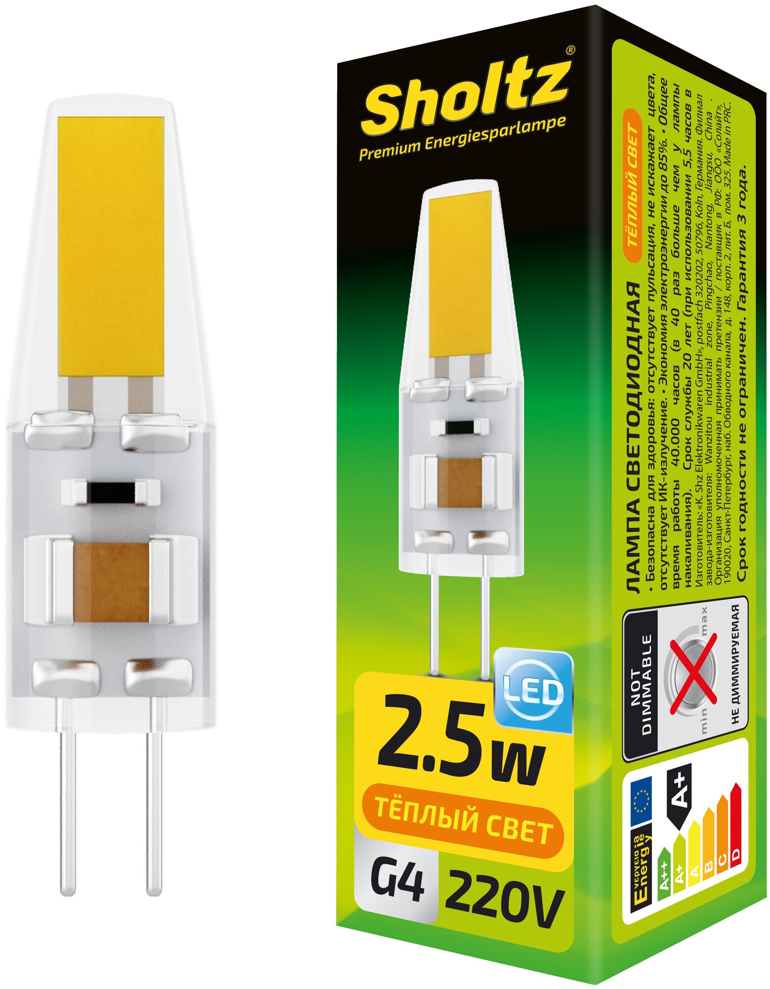 Купить Лампа светодиодная энергосберегающая Sholtz 2,5Вт 220В капсула JC G4 2700К silicone(Шольц) LOG1104
