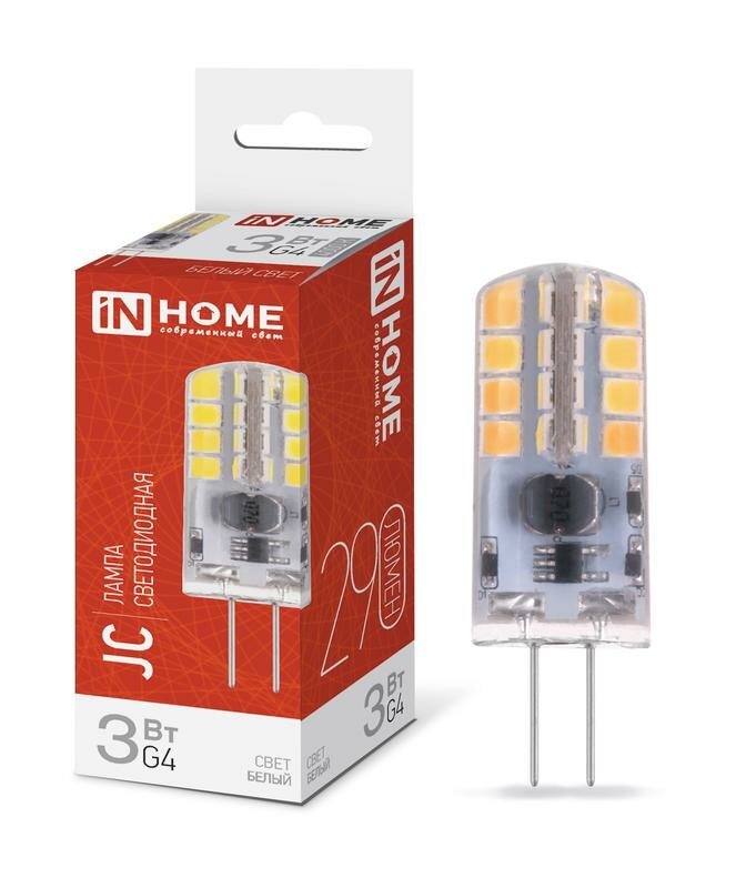 Лампа светодиодная LED-JC 3Вт 12В 4000К нейтр. бел. G4 290лм | код 4690612036021 | IN HOME (60шт.в упак.) интересное: