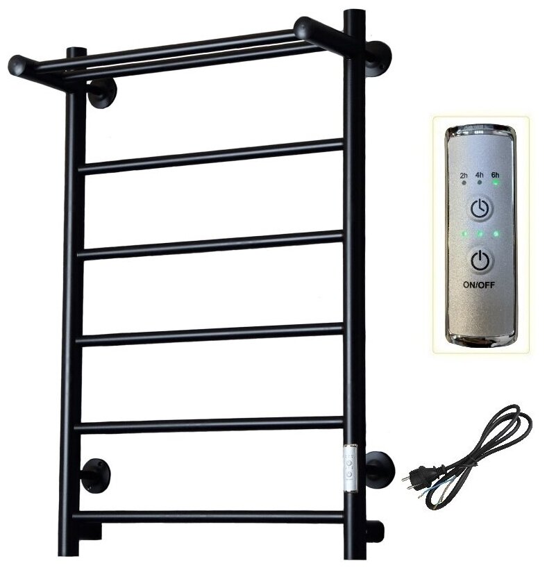 Полотенцесушитель электрический Status Аспект сп 1 80 на 50 с полкой, черный, таймер, скрытое универсальное подключение