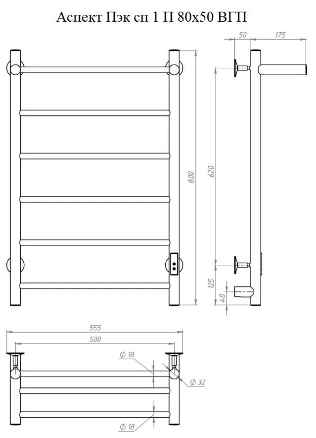 Полотенцесушитель Электрический Тругор Аспект Пэк сп 1 П 80х50 черный ВГП