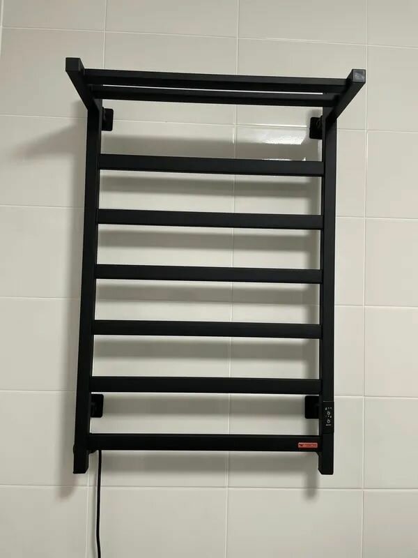 Полотенцесушитель электрический Тругор 500мм 800мм чёрный квадратный форма лесенка, подключение: слева/справа/скрытое подключение/шнур с вилкой.