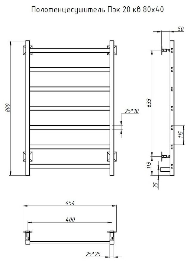 Купить Полотенцесушитель электрический Тругор 454х800мм форма лесенка 7 перекладин универсальное подключение