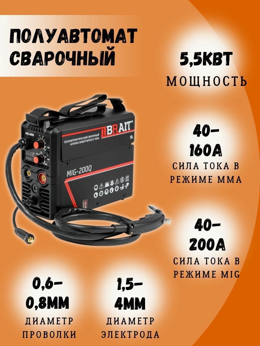 Сварочный инвертор полуавтомат BRAIT MIG-200Q подарок на день рождения мужчине, любимому, папе, дедушке, парню