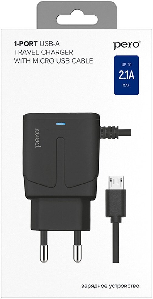Сетевое зарядное устройство PERO TC04 1USB 2.1A + MICRO-USB,, черный