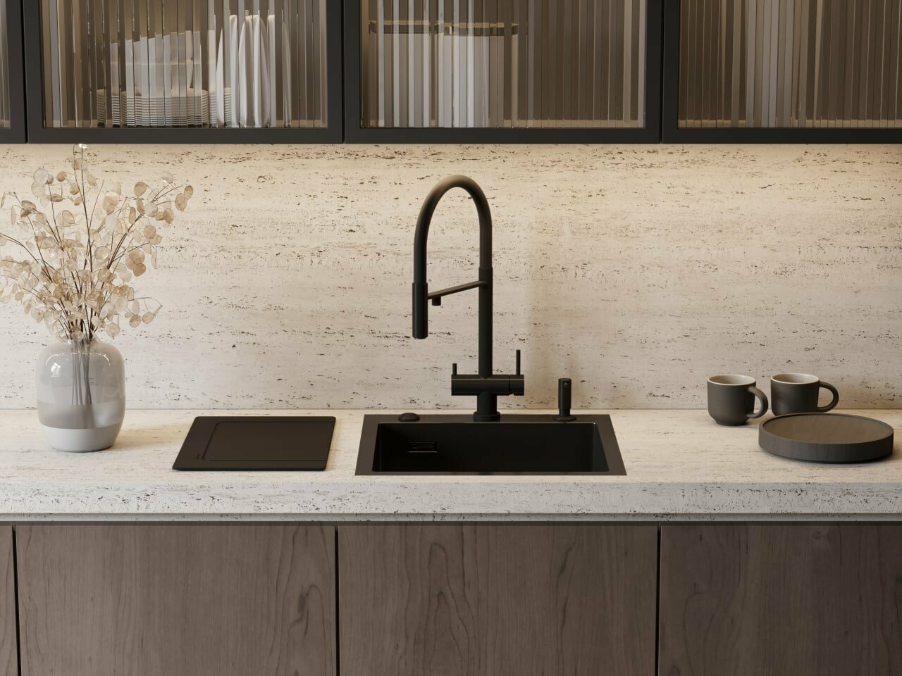 Мойка кухонная иск. камень Flortek "Ринг 300" 340х420х217, цвет капучино, подстольная