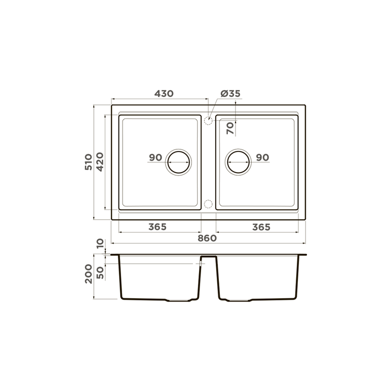 Кухонная мойка 86 см Omoikiri Tedori 86-2-BL с донным клапаном черный