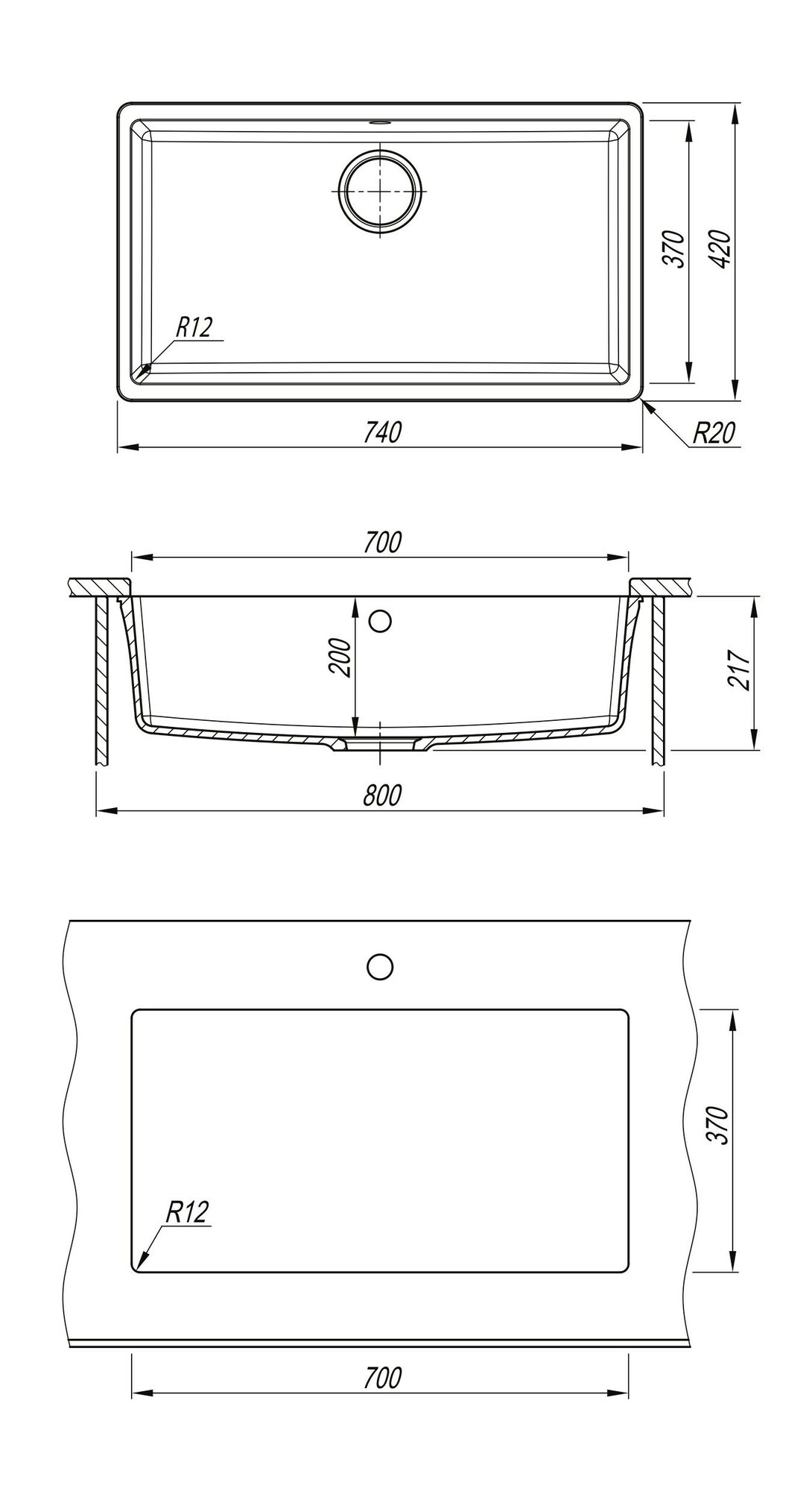 Кухонная мойка Florentina Вега 700 Антрацит Искусственный камень