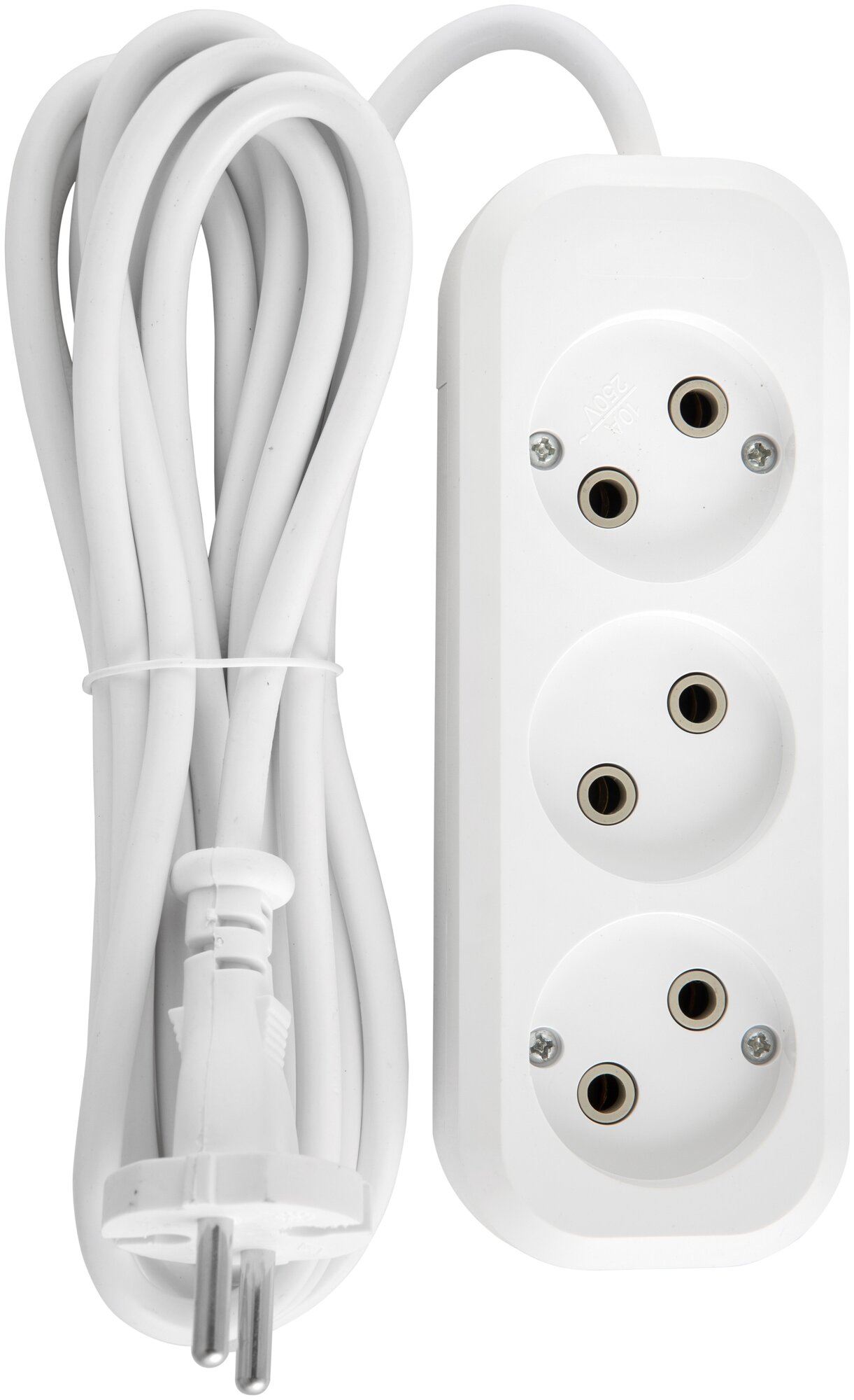 Купить Удлинитель бытовой, сетевой фильтр абк-сила, 3 гнезда, без заземления, 3м, ПВС 2х1мм кв. 10А/220В