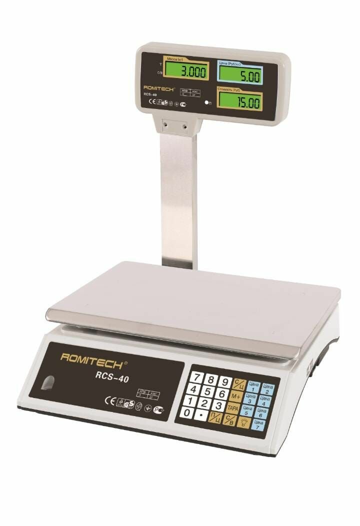 Весы торговые счетные электронные с вертикальной стойкой 40кг ROMITECH RCS-40
