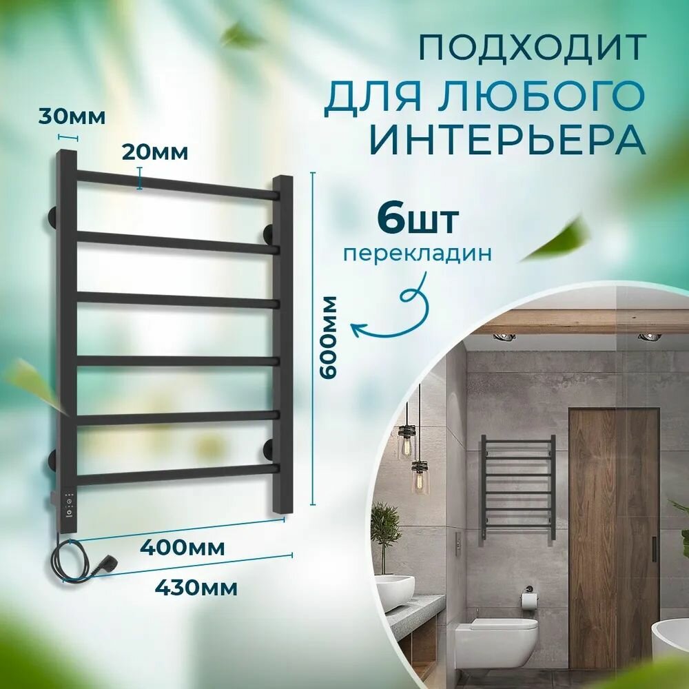 Полотенцесушитель электрический Laris Феличия ЧКЧ П8 400х600 Э черный матовый правое подключение