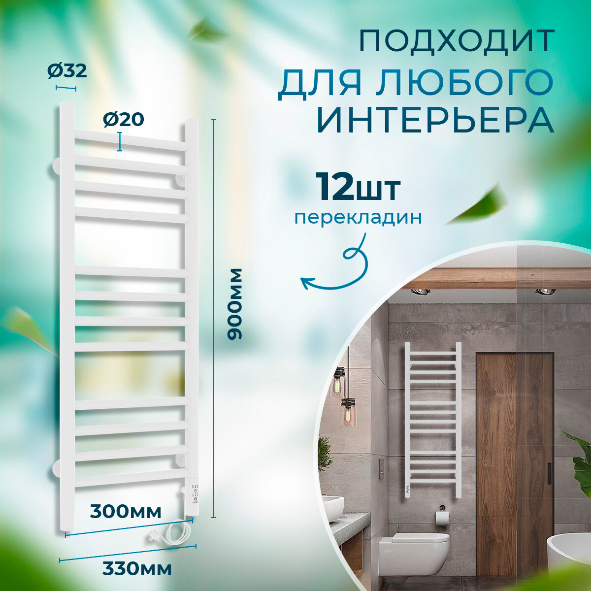 Полотенцесушитель электрический Laris Лаванда ЧК П12 300/900 белый, R
