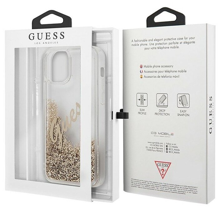 Чехол Guess Liquid Glitter Script Vintage logo для iPhone 12 Pro Max, золотой интересное: