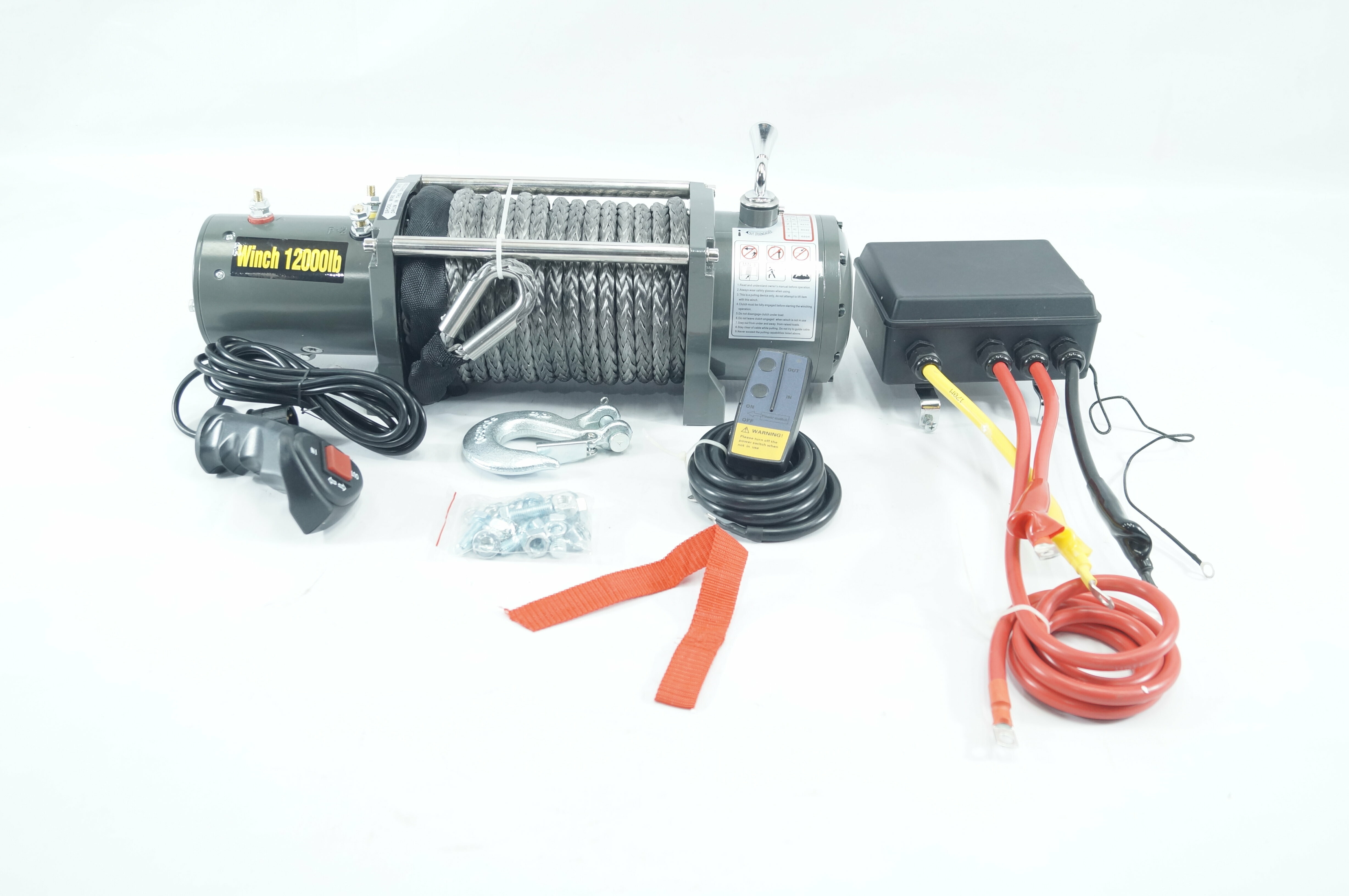 Купить Лебедка электрическая 12V Electric Winch 12000lbs / 5443 кг с кевларовым тросом 10mm, алюминиевый клюз